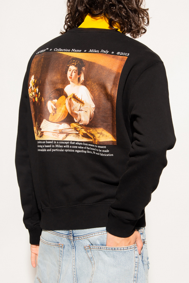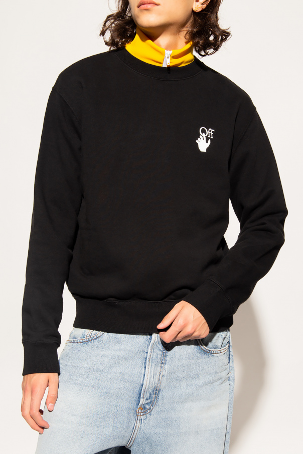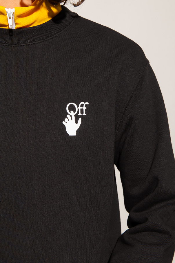 Black crewneck sweatshirt from Off-White. Crafted from cotton, this garment is enriched by a multicolored printed logo pattern and ribbed trims at the neck, hem and cuffs.