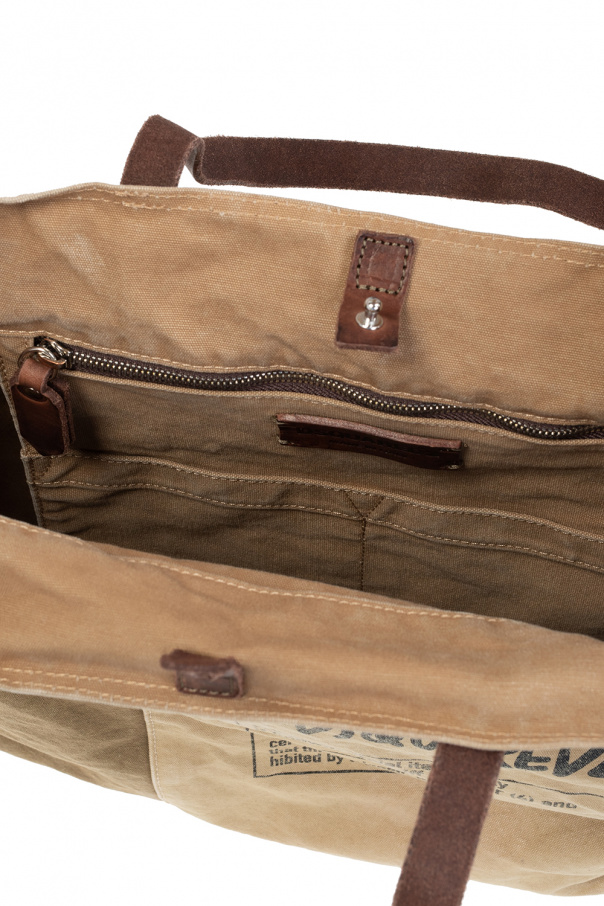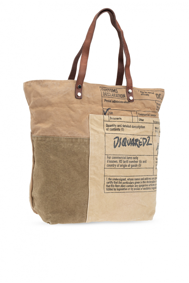 Beige, brown and green shopper bag from Dsquared2. Fastened with a hook, this model features a black logo print, two half-round handles and one internal compartment with one zip pocket and two slip pockets.