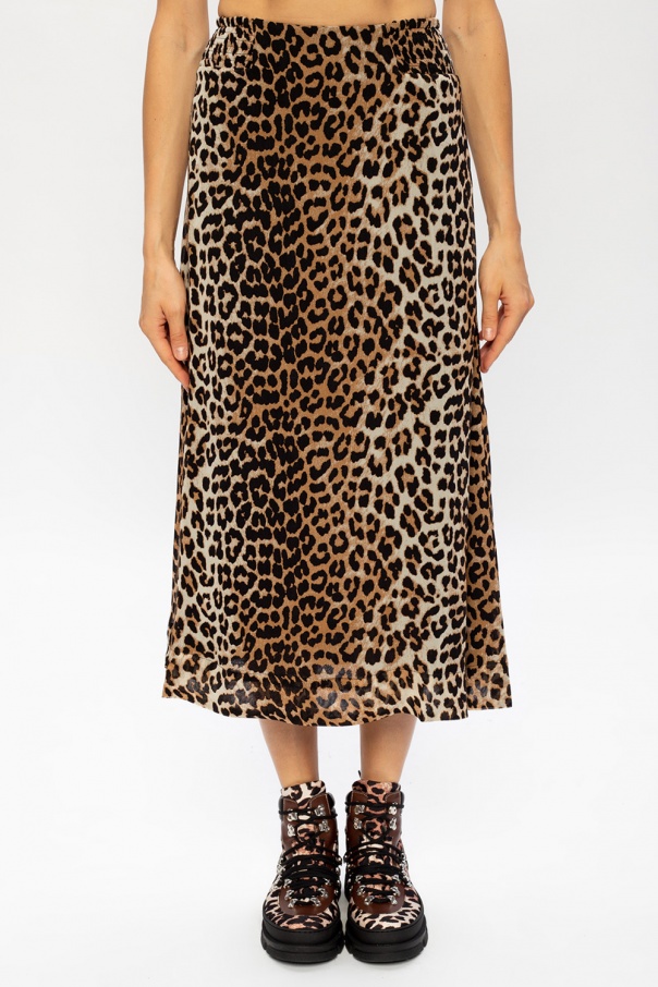 Brown and black skirt from Ganni. Illustrated with an all-over leopard print, this style was designed with an elasticated waistband and a flared hem.