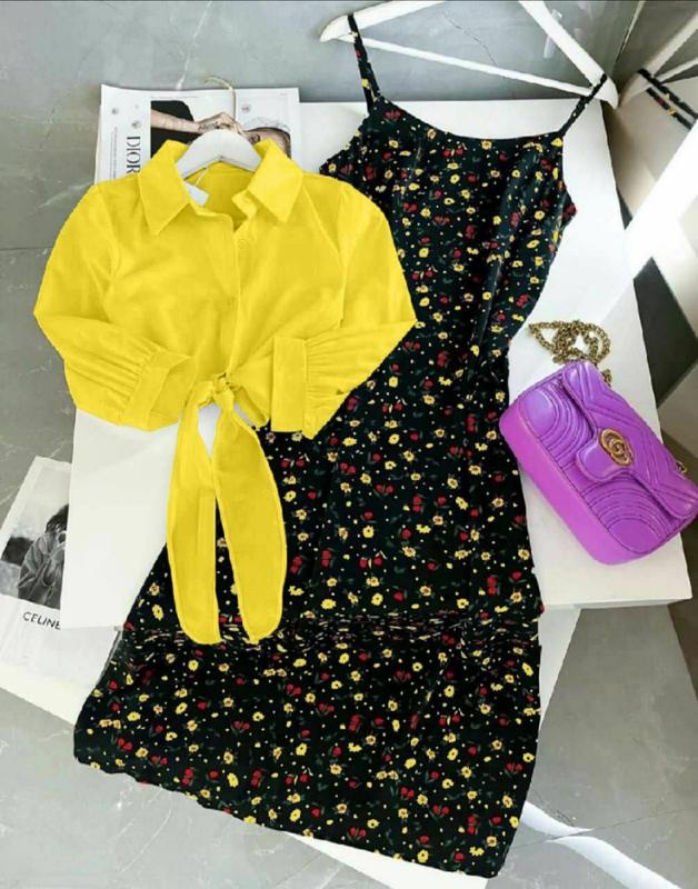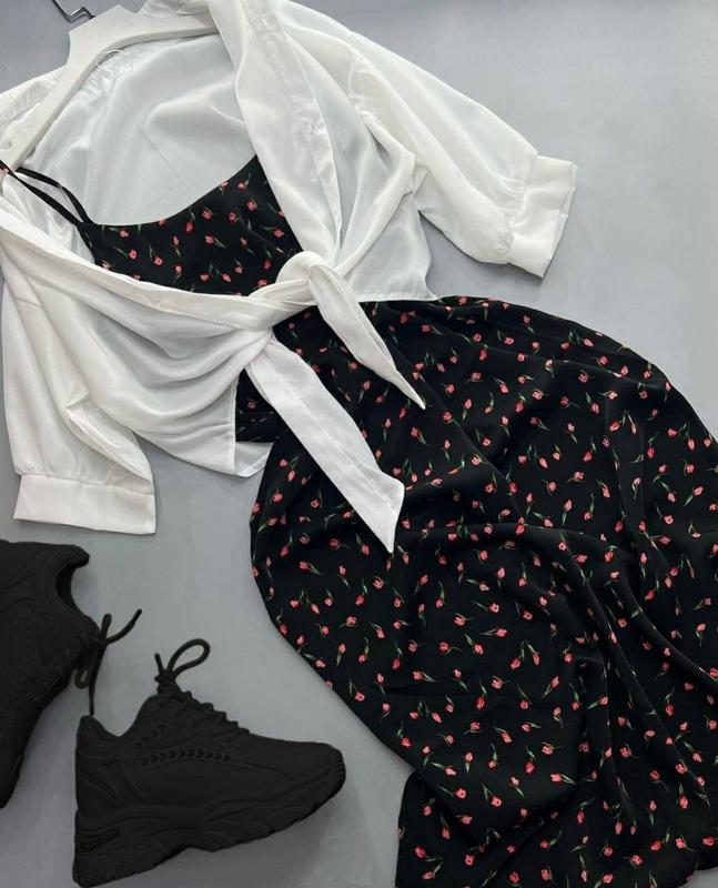 цветочный принт.Супер нежный сарафан в дуэте с легкой рубашкой, идеальный вариант для лета🥰