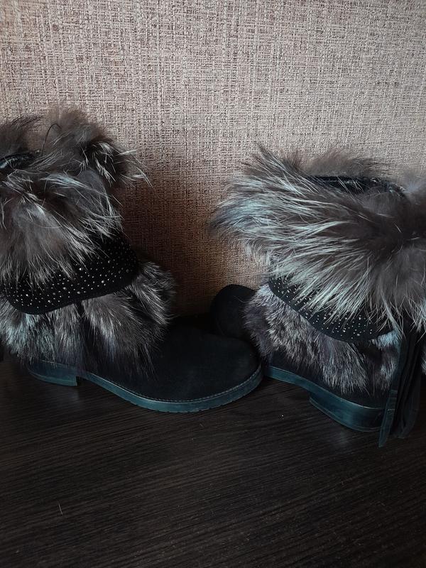 Замшевые сапожки с чернобуркой, очень теплые. Обуты несколько раз. Набойка заменена на нескользящую. 37 р.