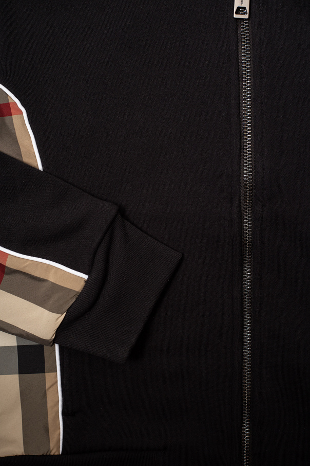 Black hoodie from Burberry Kids. Made of cotton, this style features a zip fastening, elasticized edges and the brand\'s signature check motif in beige, black and red.