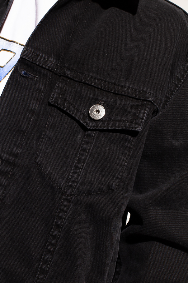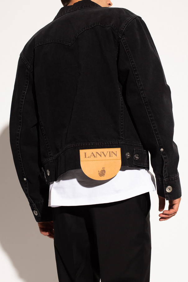 Black denim jacket from Lanvin. Fastened with buttons, this garment features a logo patch at the back, two slip pockets, two buttoned flap pockets and gold-tone metal hardware.
