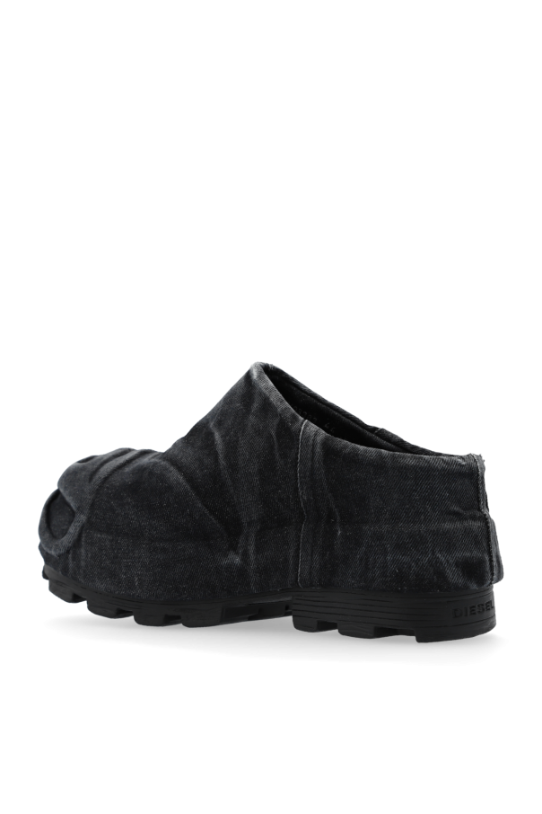 Introducing the \'D-HAMMER\' from Diesel\'s exclusive fashion line, a statement piece that marries rugged elegance with cutting-edge design. These shoes, presented in a sophisticated dark grey hue, encapsulate the essence of modern luxury footwear. Crafted from a soft, velvety material, reminiscent of suede or a high-quality synthetic alternative, they offer both style and tactile pleasure. The construction of the \'D-HAMMER\' is robust, featuring a thick, chunky profile and a solid, textured sole that promises excellent grip and lasting durability. The rounded front of the shoe adds a touch of classic refinement, while the prominently displayed logo on the heel signifies the esteemed Diesel brand. Notably, the shoes are accentuated by distinct stitching details that highlight their unique shape and design. Designed with a relaxed fit, these shoes ensure comfort and ease of wear, making them a versatile addition to any casual ensemble. Whether paired with jeans or dungarees, the \'D-HAMMER\' effortlessly elevates your everyday attire with its casual yet stylish character. Why Purchase This Product? Exclusive design from the renowned Diesel brand Luxurious, velvety material that mimics the finest suede Durable construction with a robust, gripping sole Unique stitching details and vintage effect for distinctive style Easy to wear with a comfortable, relaxed fit