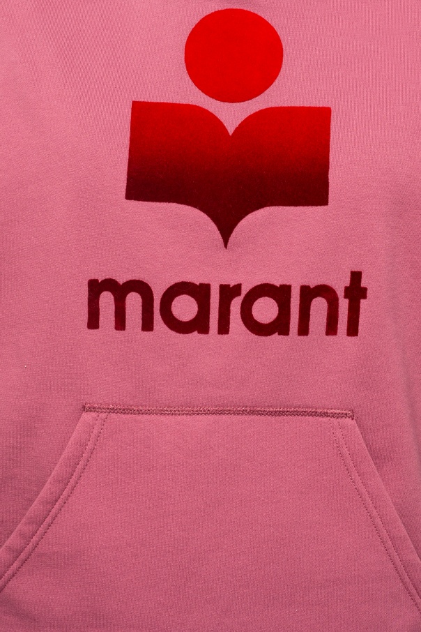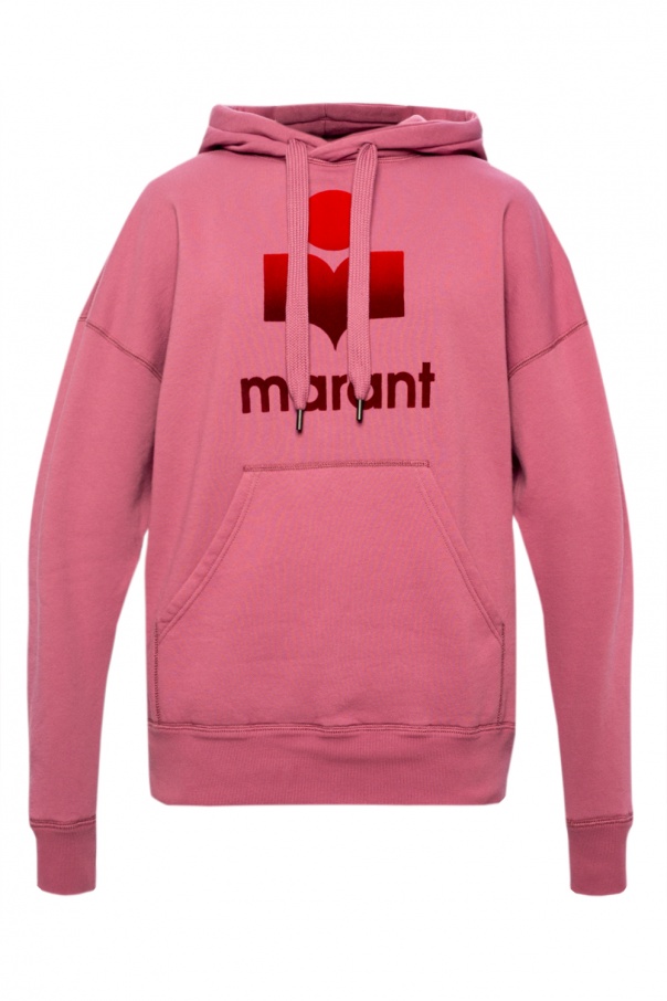 Pink sweatshirt with a drawcord-adjustable hood from Isabel Marant Étoile. Boasting a red and maroon velvet-flocked logo appliqué, this cotton-crafted hoodie is complete with a kangaroo pocket and rib-knit trims.