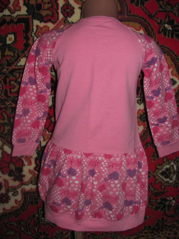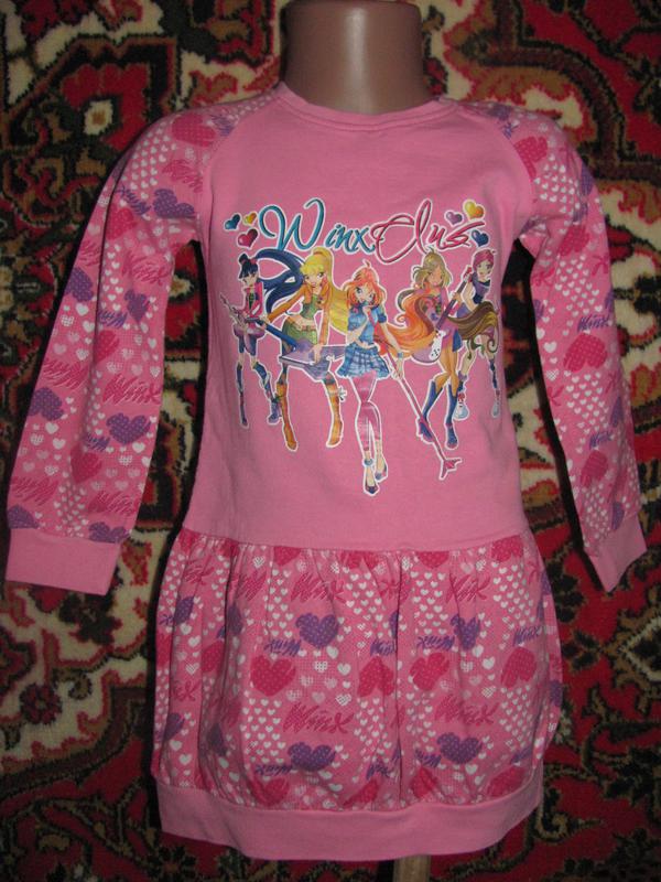 Тёплое эксклюзивное трикотажное платье с начёсом Винкс Winx. Размер на 5-7 лет. Длина 54, рукав от горловины 41,5, ширина под руками 30 (тянется).