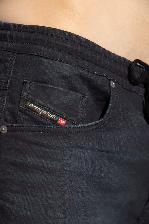 Dark navy blue ‘2033 D-KROOLEY’ shorts from Diesel. Made of cotton, this pair features a drawstring waistband, five slip pockets and distressed details.