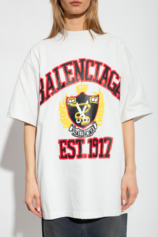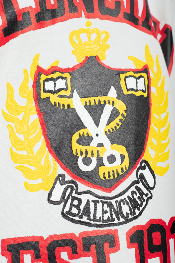 White crewneck T-shirt with a vintage effect from Balenciaga. Made of cotton with an oversize fit, this style features a colourful logo print, short sleeves and ribbing on the collar.