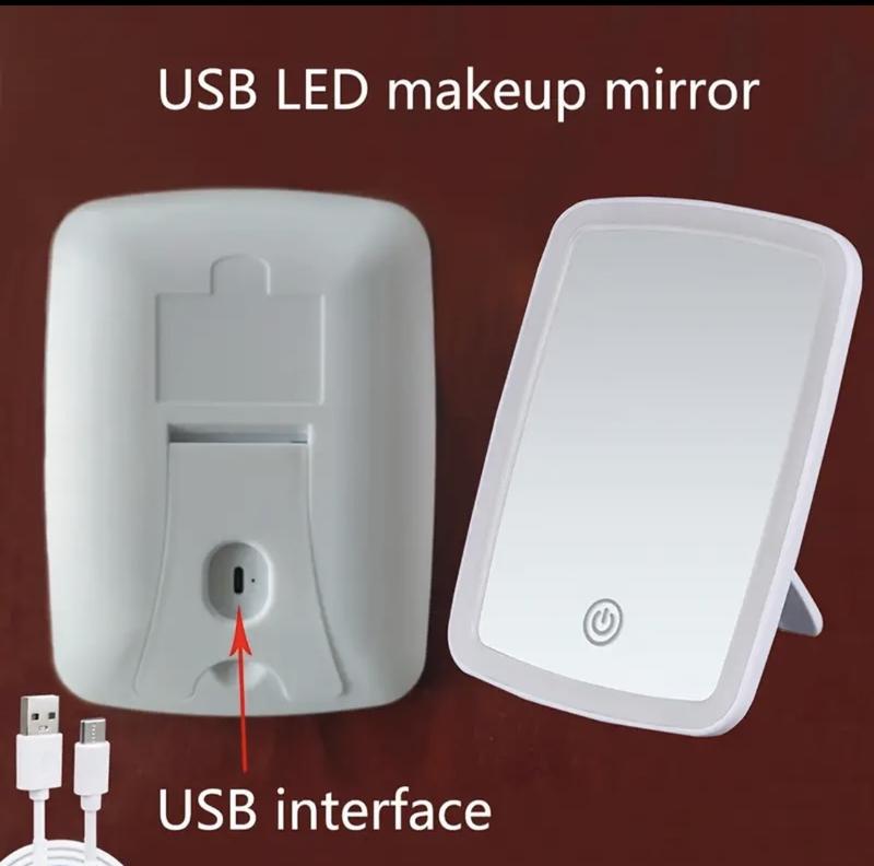 Зеркало для макияжа с LED-подсветкой и сенсорным экраном, 3 режима подсветки - белый, натуральный и теплый свет, регулируемая яркость, портативное сложное косметическое зеркало для стола с USB зарядкой, пластиковая поверхность - компактная и удобная для подорожей