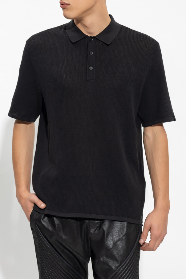 Black polo shirt from Rag & Bone. Crafted from cotton, this short sleeve design features button fastenings, collar and ribbed edges.