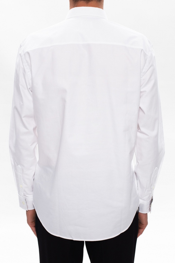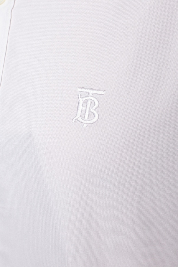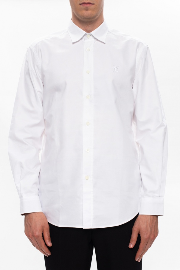 White shirt from Burberry. Made of cotton. Fastened with buttons. Decorated with a white logo embroidery. Long sleeves with button cuffs.