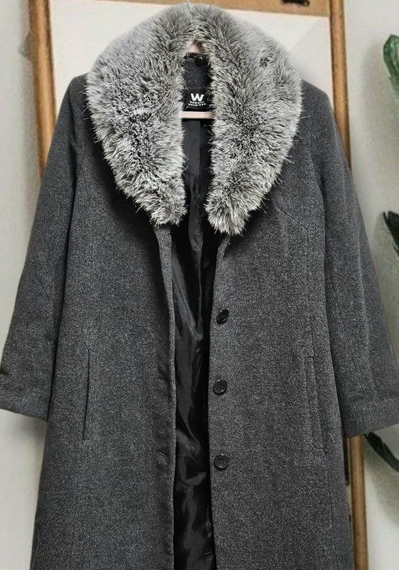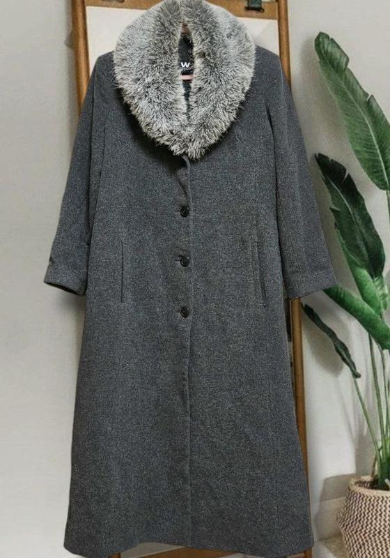 Длинное женское шерстяное пальто с меховым воротником Womans Wardrobe