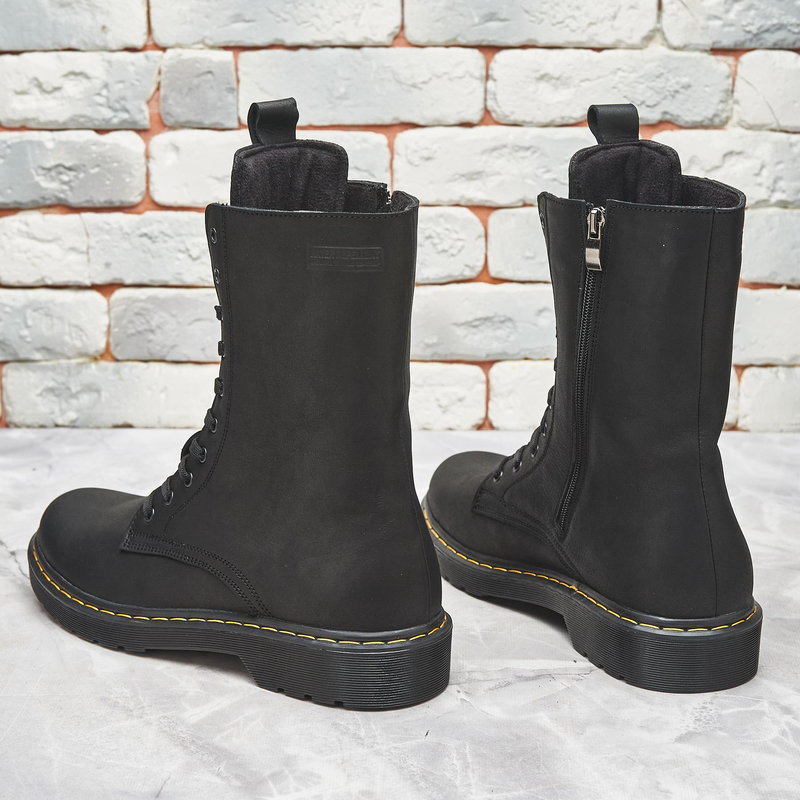 Стильные черные мужские высокие ботинки,берцы зимние, кожаные,натуральная кожа и мех, обувь на зиму