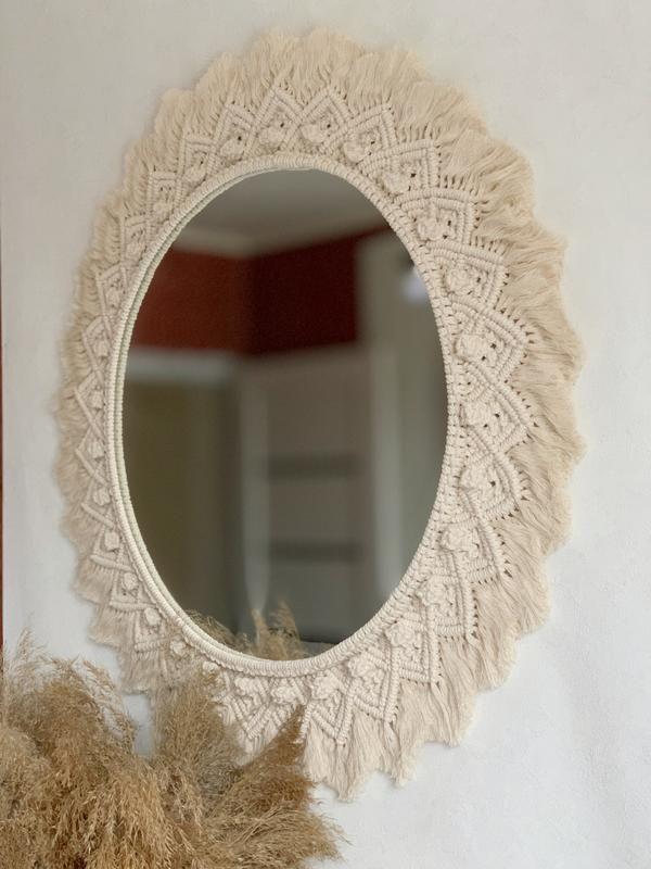 Декоративне і в той же час функціональне Дзеркало в Макраме обрамленні. Витончений і елегантний предмет декору.