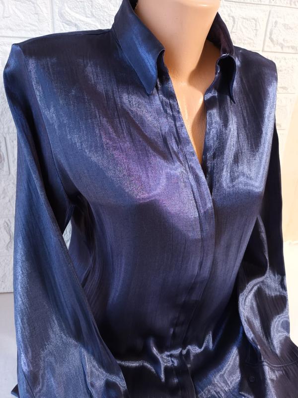 Красивая лёгкая рубашка под джинсы и юбку, с космическим переливом. Состояние отличное. Ткань не тянется и не просвечивает.