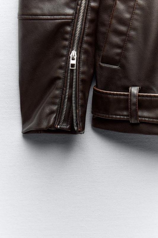 Куртка с лацканами и длинными рукавами. Хлястики на плечах, карманы спереди и ремень с металлической пряжкой внизу. Застегивается на молнию на запах спереди.Состояние: НовоеЦвет:- Коричневый