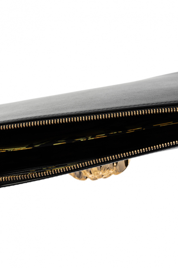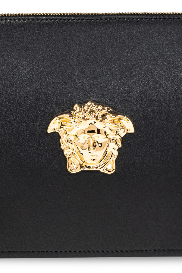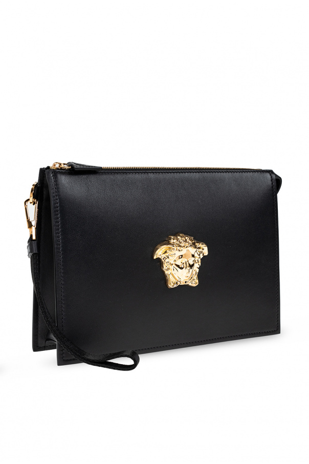 Black ‘La Medusa’ hand bag from Versace. Crafted from calf leather, this model fastens with a zip and is enriched by the label’s signature Medusa head. It is complete with a detachable wrist strap, gold-tone metal hardware and two internal compartments with one zip pocket and eight card slots.