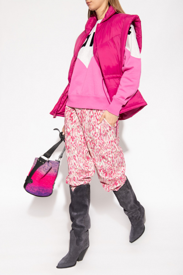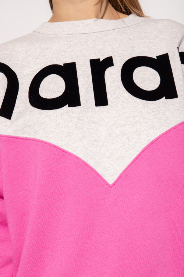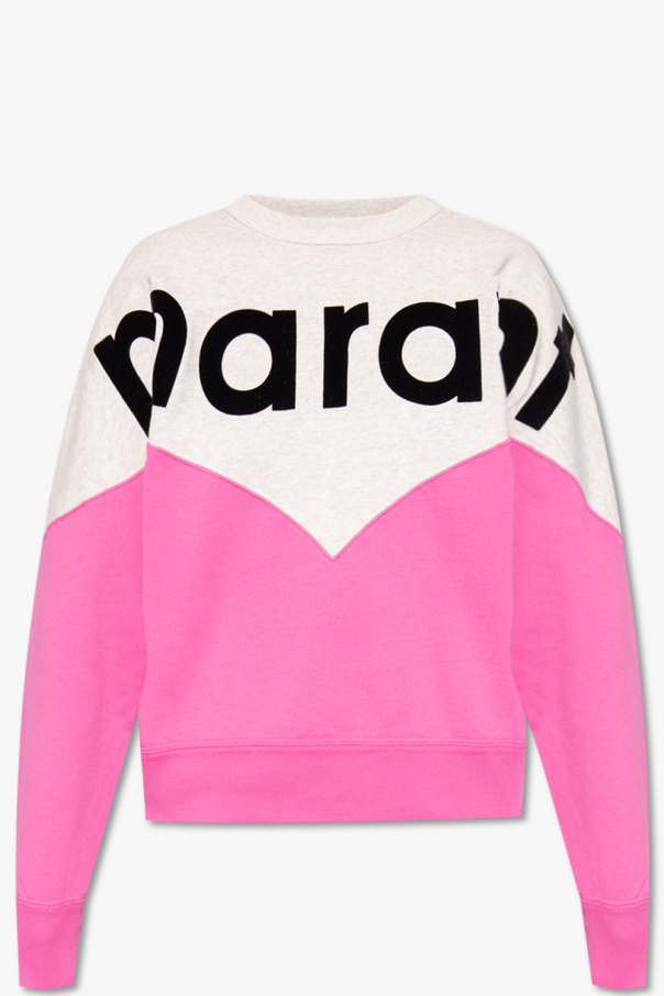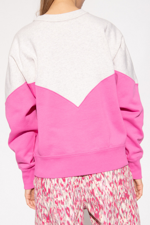 Grey and pink ‘Huston’ sweatshirt from Marant Étoile. Crafted from cotton, this design features a velvet pattern with a black logo as well as ribbed trims at the crew neck, hem and cuffs.