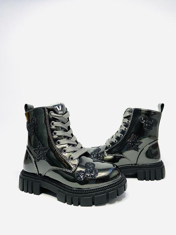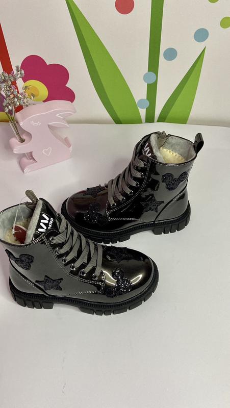Зимові стильні черевички , для маленької принцеси від бренду Weestep. В середині густа натуральна овчина. Верх лакована штучна шкіра, не тріскає на морозі. Відмінна якість. Підошва з водонепроникною дихаючою мембраною, антисковзна. Устілка утеплена та замінна. Температурний режим до - 30°. Фіксація на шнурівках, збоку на замочку. Дуже стильні.