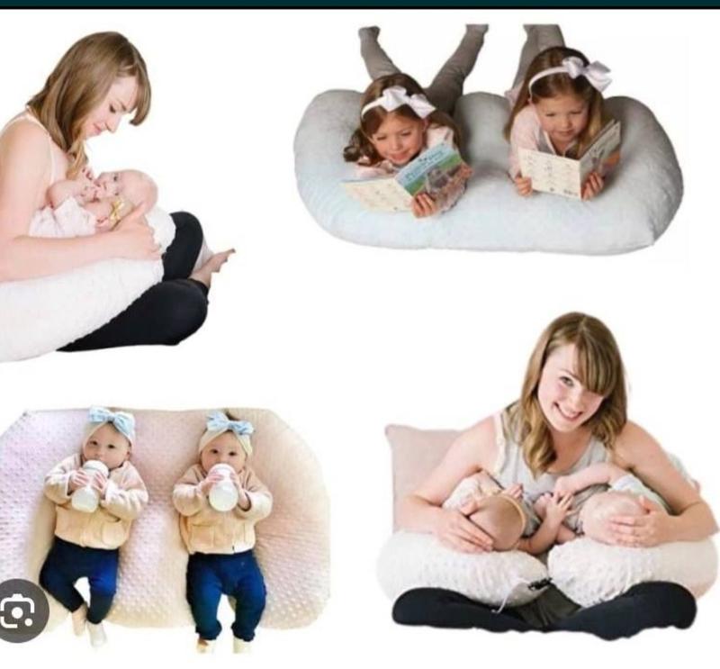 Подушка универсальная, можно по разному кормить, детки могут потом сами лежать на ней. Чехол снимается, материя велюр( очень мягкий) Мастхэв для мам двойни!