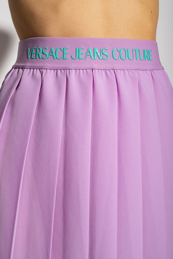 Light purple skirt from Versace Jeans Couture. Distinguished by pleats, this style features an elasticated waistband with a raised blue logo.