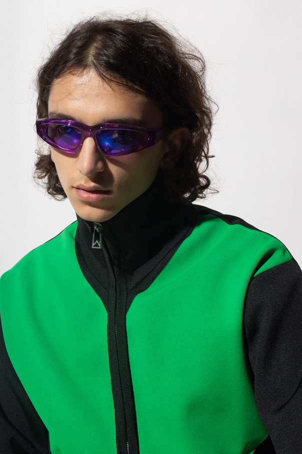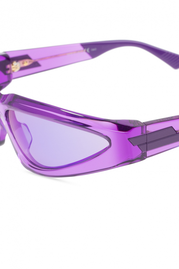 Purple sunglasses from Bottega Veneta. Crafted from metal and acetate, this pair comes with a case and features certified purple lenses with 100% UVA and UVB protection.