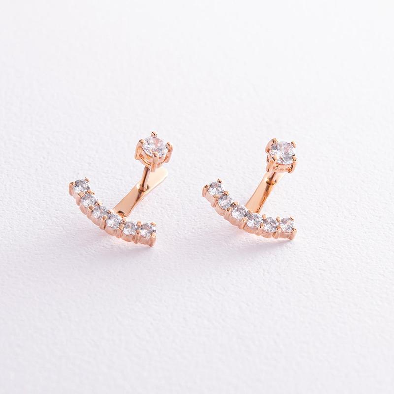 Серьги - джекеты в красном золоте (фианиты) Металл: красное золото 585"
