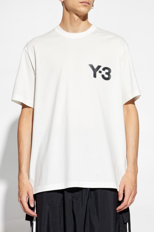Introducing the White Logo T-Shirt from the illustrious Y-3 Yohji Yamamoto. Crafted from the finest quality cotton, this T-shirt epitomizes timeless elegance and minimalist sophistication. The dominant hue is pristine white, providing a versatile and fresh canvas. The exquisite fabric ensures unparalleled comfort and durability, making it an essential addition to any wardrobe. The T-shirt boasts a classic, straight cut with short sleeves, offering a relaxed and comfortable fit. The front features a prominent black \"Y-3\" logo on the left chest, serving as the primary decorative element. A subtle, additional print is discreetly placed just below the collar on the back, adding a touch of understated detail. This unisex garment is showcased on both male and female models, highlighting its versatile appeal. Perfect for those who appreciate refined, minimalist design, this T-shirt seamlessly blends style and comfort. Why Choose This Product? Exquisite Material: Made from 100% high-quality cotton for superior comfort. Timeless Design: Classic, straight cut with a relaxed fit suitable for any occasion. Iconic Branding: Features the distinctive Y-3 logo, symbolizing luxury and style. Unisex Appeal: Designed to complement both men and women. Subtle Details: Includes a discreet additional print on the back for a touch of uniqueness.