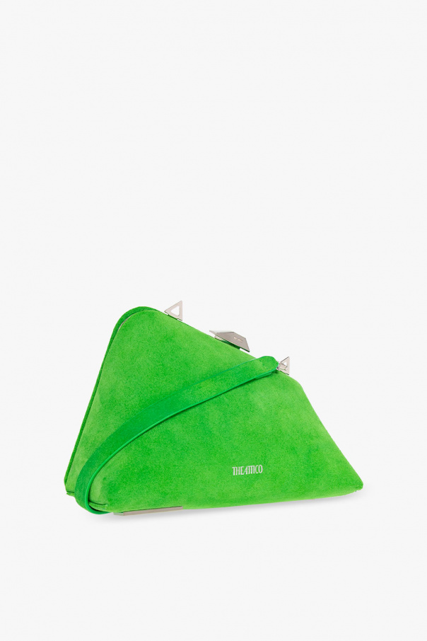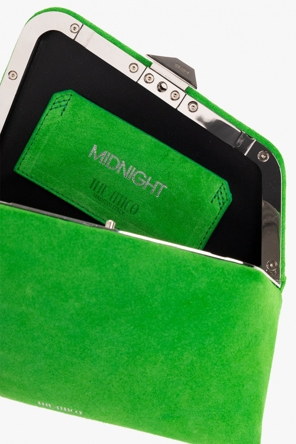 Green ‘Midnight’ clutch from The Attico. Crafted from calf suede, this design secures with a snap and showcases the brand\'s logo printed on the front, a detachable shoulder strap, silver-tone metal hardware and one internal compartment with a card slot.