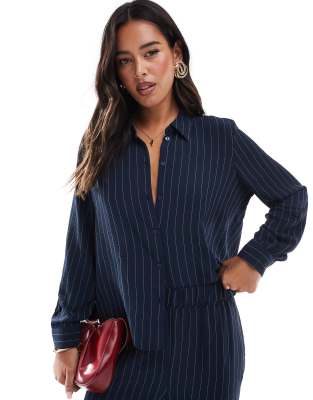 Vero Moda overaized shirt and trouser co-ord in navy pinstripe
