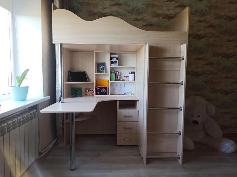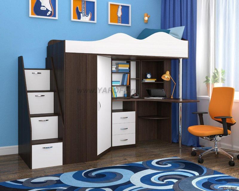 Детская двухъярусная кровать-чердак со столом дм37а
