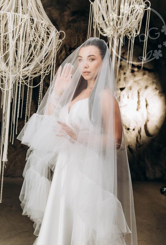 Фата для невесты с каймой рюши. Это невероятный аксессуар который набирает популярность в свадебной моде.