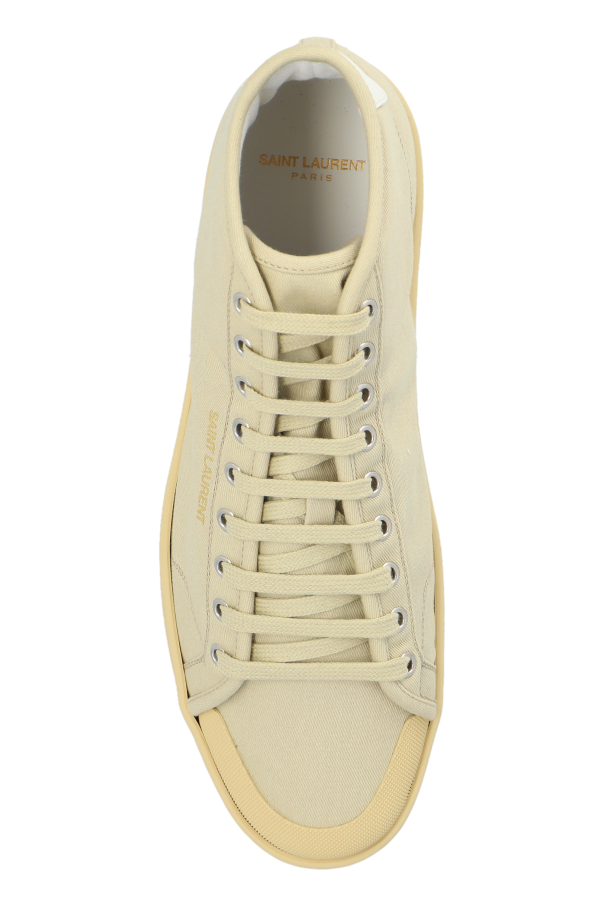 Introducing the \'SL39\' high-top sneakers by Saint Laurent, a testament to understated elegance and sartorial finesse within the realm of athletic footwear. Crafted with meticulous attention to detail, these sneakers feature a harmonious blend of leather and textile materials, presenting a seamless, uniform texture and color in sophisticated beige. The classic, minimalist design is accentuated with round, reinforced toe caps and a matching flat rubber sole, ensuring both durability and a sleek silhouette. The beige lace-up closure, adorned with metal eyelets, not only adds a touch of elegance but also allows for a customizable fit, enhancing the overall comfort and style. Absent of any ostentatious prints or embellishments, the design\'s purity is only subtly interrupted by a petite, white brand tag at the heel, the contents of which remain a mystery, inviting intrigue. Why Purchase the \'SL39\' High-Top Sneakers? Elegant, minimalist design suitable for various styles, from casual to semi-formal. Exquisite blend of leather and textile materials, offering comfort and durability. Subtle branding, exemplifying the sneakers\' exclusive nature. Beige lace-up closure with metal eyelets for a refined, adjustable fit. Flat rubber sole designed for athletic and everyday use.