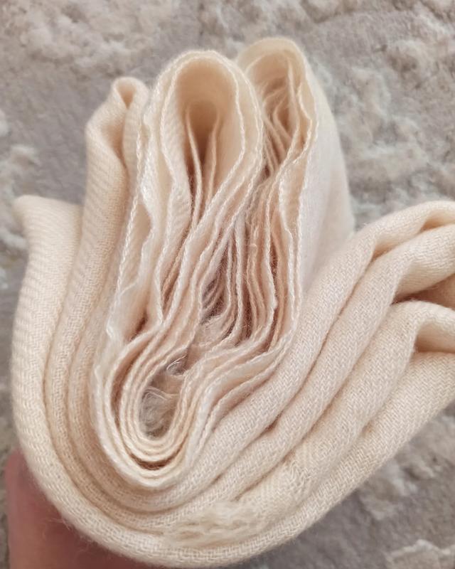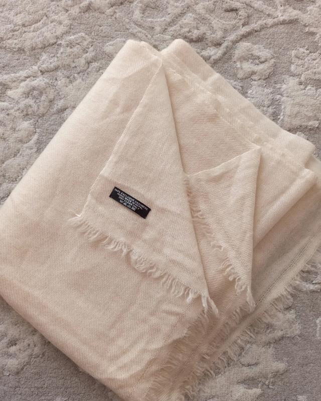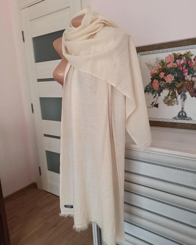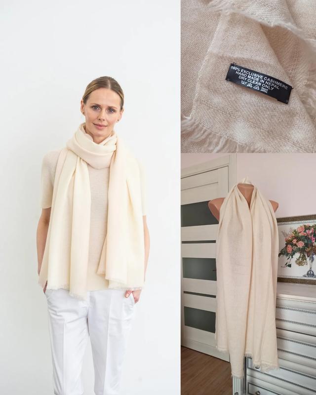 Сверхтонкий палантин из чрезвычайно мягкого, нежного в виде пух натурального кашемира, цвета айвори. Универсальная модель, которая идеально сочетается с дневным и вечерним образами. Идеальное состояние, без нюансов