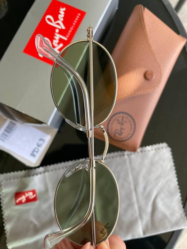 Почти новые очки СООНЦЕЗАЩИТЫЕ ОКУЛЯРЫ RAY-BAN RB 3547 001/31 GREEN, в серебряной оправе, овальные