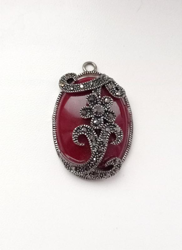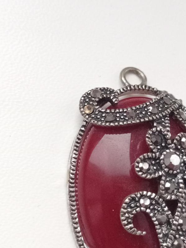 Кулон досить великого розміру, матеріал метал та пластик. Один камінчик, нажаль, відсутній, що показано на останньому фото, але в житті взагалі не помітно ☺️