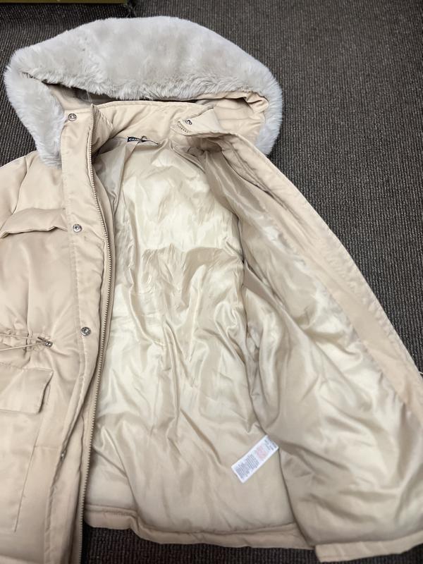 Зимова куртка, бежевого кольору, капюшон та мех можна відстібнути, на талії регулюється затяжками