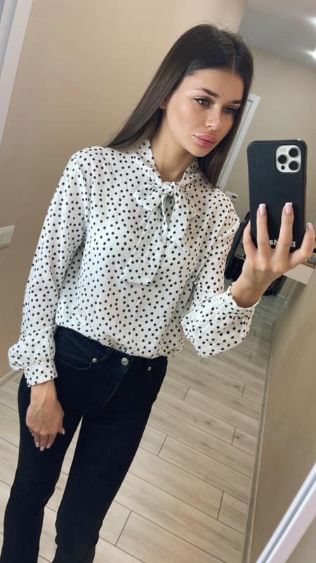 Белая блузка в черный горошек от Бренда Boohoo🖤