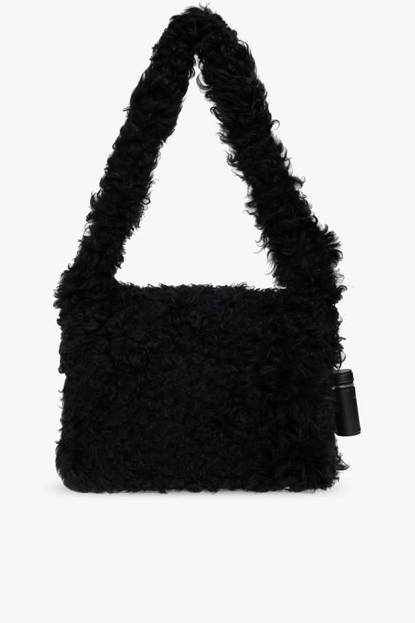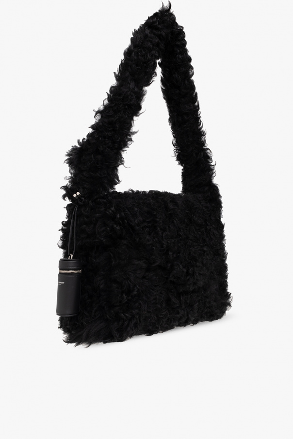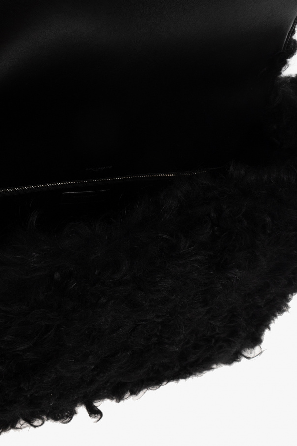 Black shoulder bag from Saint Laurent. Crafted from lamb fur, this model features a detachable zipped case, long shoulder strap, silver-tone metal hardware and one internal compartment with one zip pocket.
