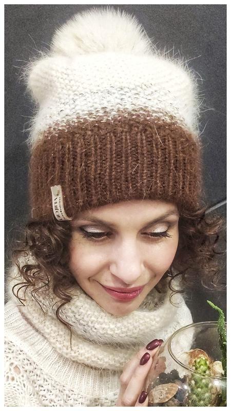 Очень красивый, теплый, комфортный комплект - шапка и снуд из пуха норка с помпоном из песца ручной работы. Цвет беж с коричневым. Подойдет на ОГ 52-55 см. Цена комплекта 2400 грн Шапка -1400 грн., снуд - 1000 грн. Повторю в любом цвете и размере на заказ.