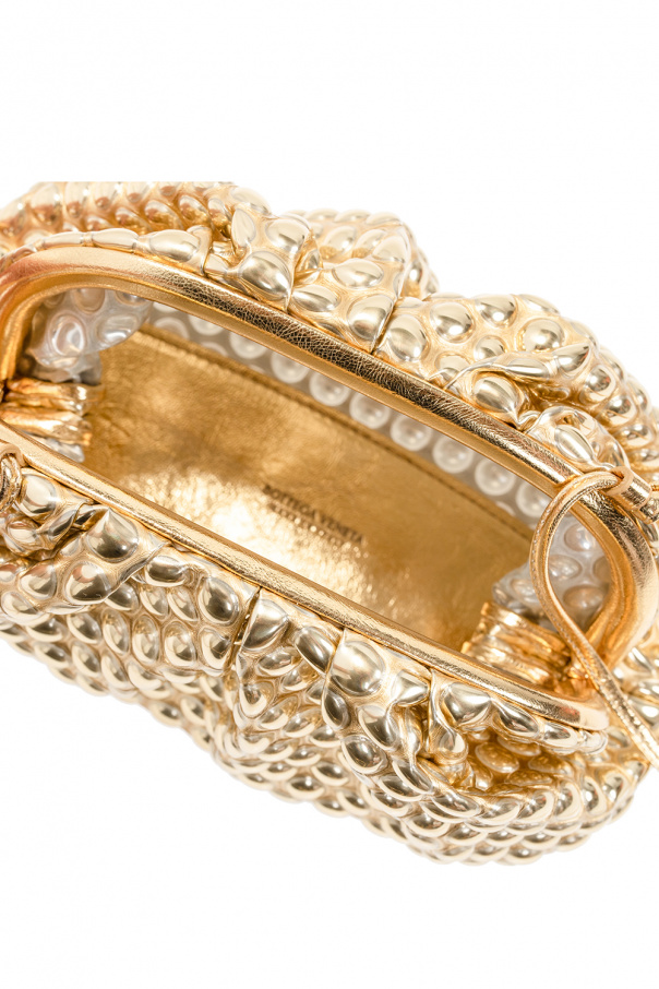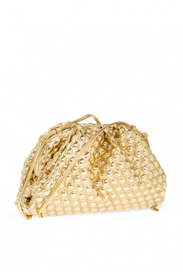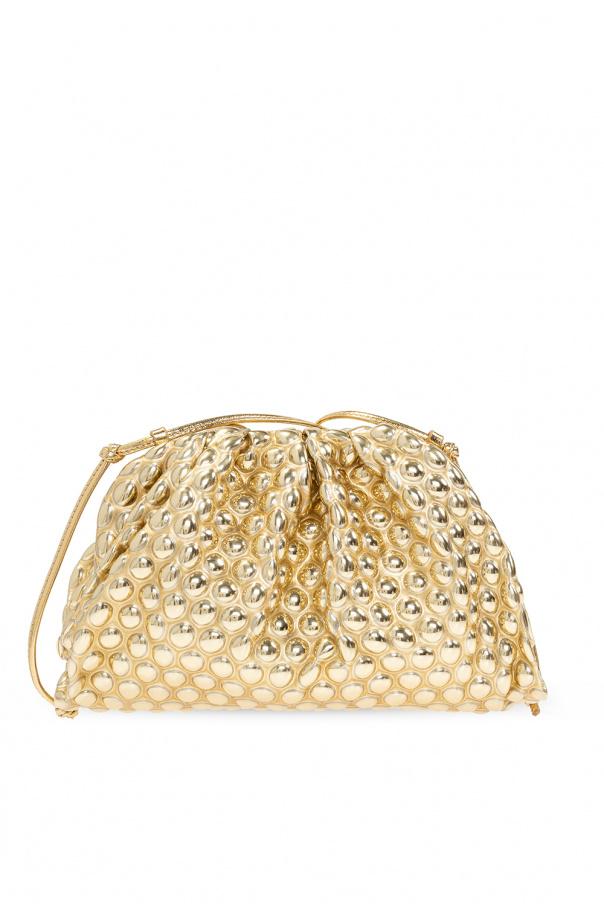Gold-tone ‘Mini Pouch’ shoulder bag from Bottega Veneta. Fastened with a magnetic snap, this model features a decorative texture, adjustable strap and one internal compartment.