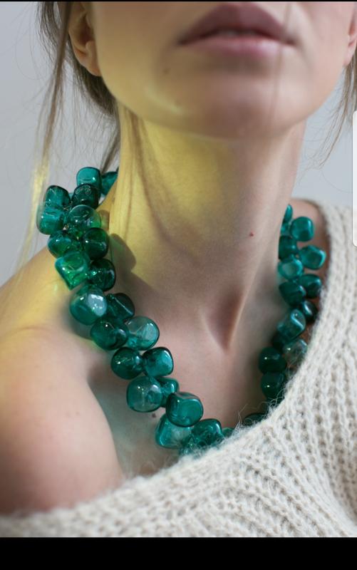 Ожерелье из стеклянных бусин-кубиков "Морская волна " Магазин НЕВЕСОМОСТЬ. Все ожерелья оригинальные