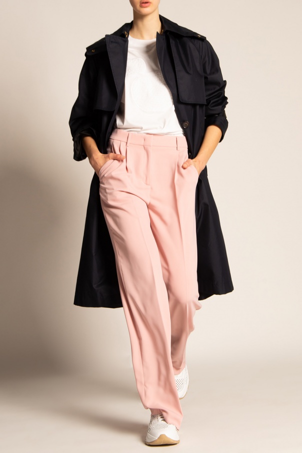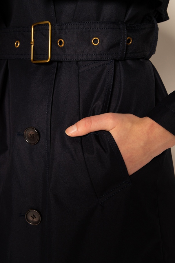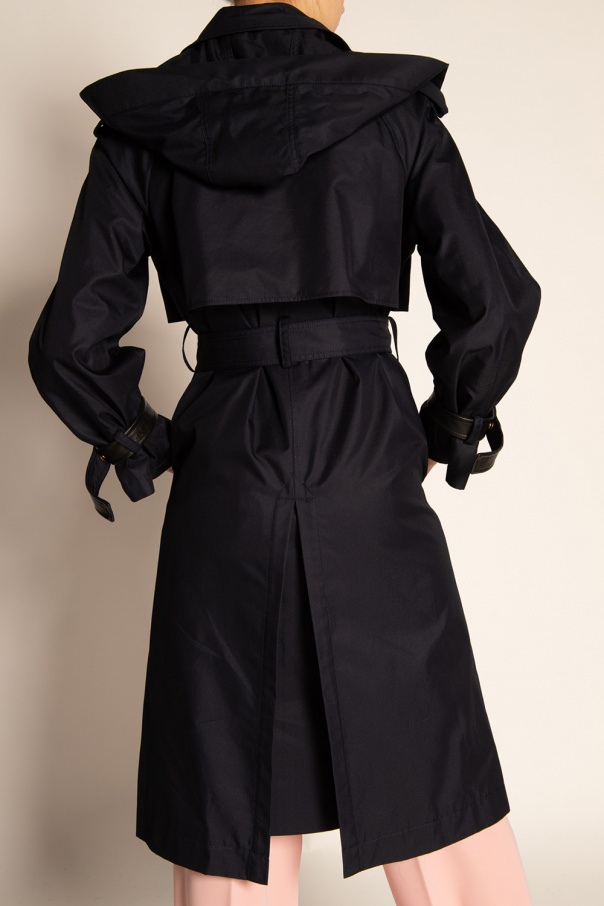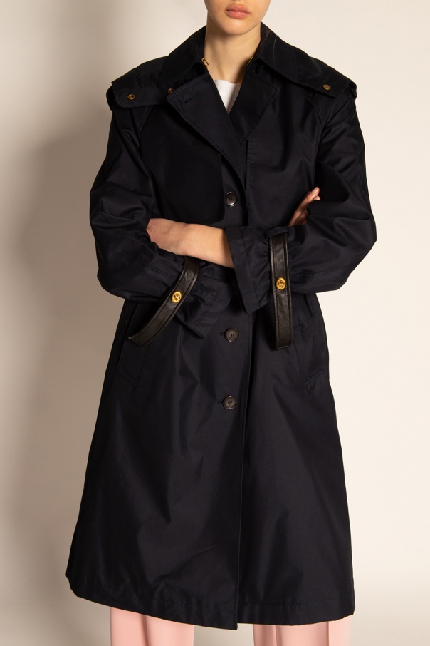 Navy hooded coat from Coach. Crafted from cotton, this long sleeve design features button fastenings, waist belt, two buttoned pockets and a decorative cut-out with gathers at the back.