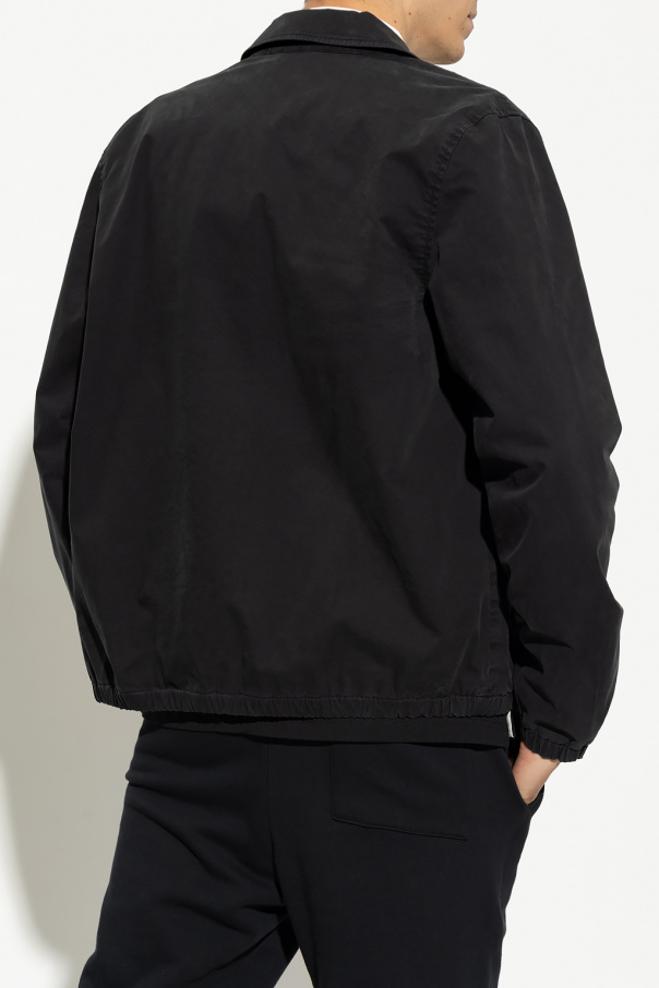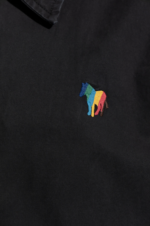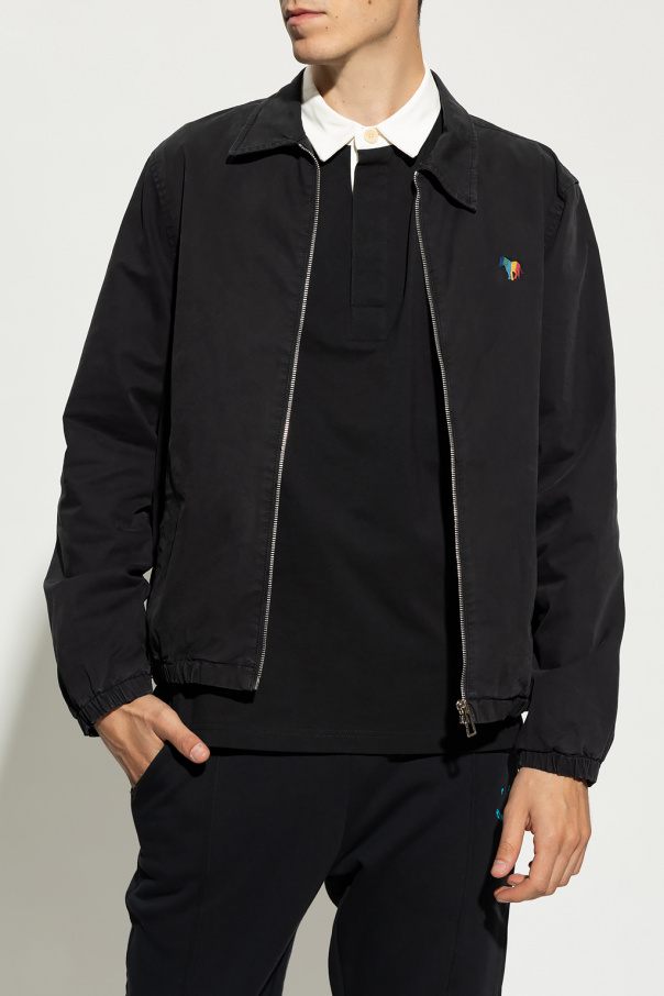 Black jacket from PS Paul Smith. Crafted from organic cotton, this style secures with a zipper and showcases colourful Zebra embroidery on the front, two snap-fastened pockets and elasticized trims on the bottom hem and cuffs.