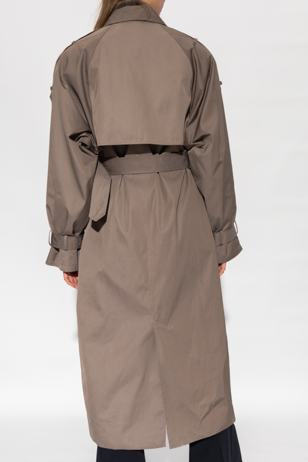 Grey and brown ‘Sargagz’ trench coat from Gestuz. Fastened with buttons, this double-breasted garment features tie fastening at the waist, two slip pockets, long sleeves and single rear vent.