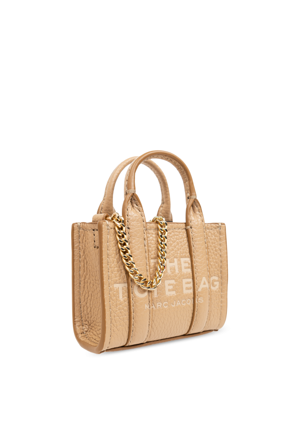 Introducing the epitome of sophistication and style, the Marc Jacobs Logo Keychain, a miniature handbag charm that exudes luxury and finesse. Crafted from the finest 100% grain leather in a chic beige hue, this exquisite accessory is a testament to the designer\'s meticulous attention to detail and commitment to quality. The keychain is adorned with a thick, gold chain that not only adds an element of elegance but also serves as a striking color contrast. Its plush leather is textured to perfection, revealing a tactile richness that is visible upon close inspection. A prominent feature is the embossed designer\'s name on one side, serving as a hallmark of authenticity and a subtle nod to the luxury inherent to the Marc Jacobs brand. The lettering, in a shade that harmonizes with the keychain\'s palette, enhances its exclusive appeal. Every aspect, from the polished gold chain to the precision of the zipper and handles, showcases the high caliber of craftsmanship that the designer is renowned for. Whether used as a stylish embellishment for keys or as an adornment for a handbag, this keychain is a versatile accessory that aligns with contemporary fashion trends while accentuating the wearer\'s individual style. Why Purchase This Product? Exclusive Design: Part of an elite collection by Marc Jacobs, offering a unique accessory that stands out. Premium Materials: Made with 100% high-quality grain leather, ensuring durability and a luxurious feel. Elegant Details: Features a gold chain, zipper, and handles that highlight the accessory\'s sophisticated aesthetics. Versatile Accessory: Perfect for elevating the look of your keys or as a chic addition to your handbag. Subtle Branding: The tastefully embossed designer name adds an element of prestige without overpowering the design.