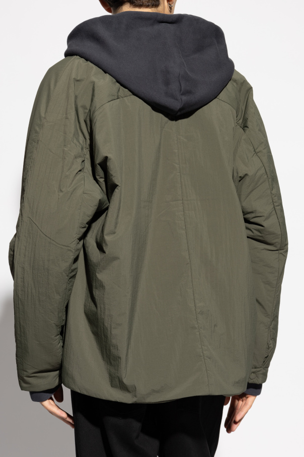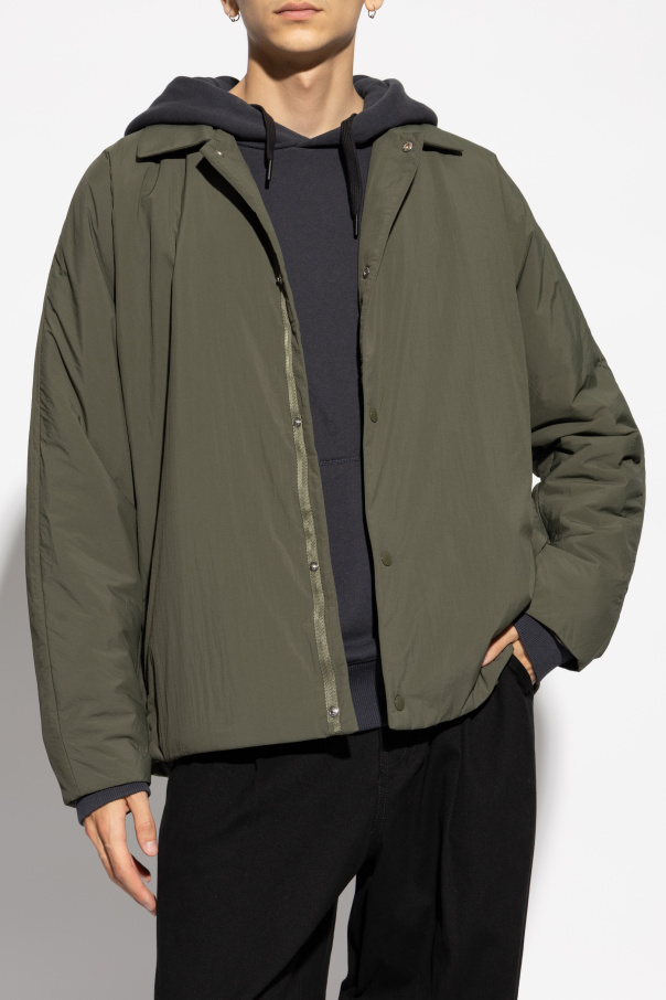 Introducing the Filled Jacket by Rag & Bone, an epitome of modern sophistication and casual elegance. Rendered in an exquisite shade of khaki, this men\'s jacket from our exclusive collection is designed to elevate your urban wardrobe. Crafted from lightweight, premium 100% nylon, the Filled Jacket boasts a sleek, classic silhouette with long sleeves and a straight hem, ensuring both style and comfort. The water-resistant and windproof properties of the material make it a versatile piece for any weather. Featuring a front snap-button closure, a traditional collar, and subtle stitching details, this jacket exudes a refined yet understated charm. The left lower side is adorned with a discreet patch showcasing the iconic \"rag & bone NEW YORK\" logo, adding a touch of authenticity and brand heritage. The jacket includes two practical pockets, seamlessly integrated into the design for both convenience and aesthetic appeal. Its relaxed fit promises unparalleled ease of movement, making it an ideal choice for daily city adventures. Why Choose This Product? Timeless Design: A classic cut with modern details for a polished look. Premium Material: Made from 100% nylon, offering durability and comfort. Versatile Style: Perfect for casual, everyday wear with a touch of luxury. Functional Features: Snap-button closure and two convenient pockets. Exclusive Branding: Adorned with the distinctive \"rag & bone NEW YORK\" logo.