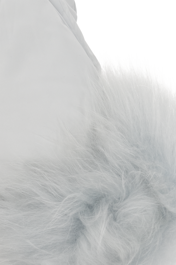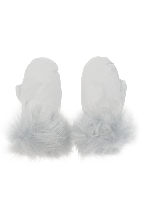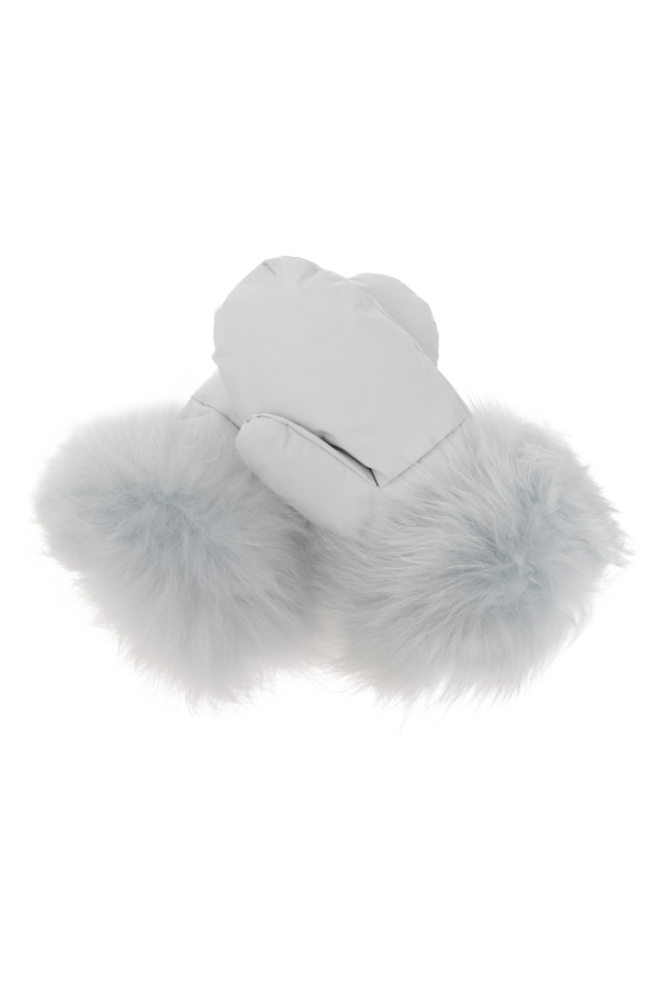 Light blue gloves from Yves Salomon. Insulated with natural duck feathers and down, this design is trimmed with lamb fur.