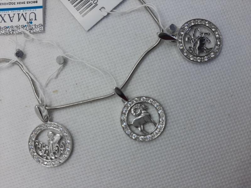 серебро 925 пробы, вставка- фианиты. Есть все знаки зодиака. Диаметр 20мм