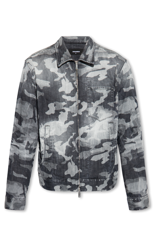 Black and grey denim jacket with a camo pattern from Dsquared2. Fastened with a two-way zip, this garment features three front pockets and long sleeves with buttoned cuffs.